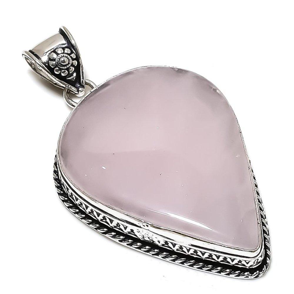 Rose Quartz Gemstone Handmade 925 Sterling Silver Jewelry Pendant 2.56" k5a12