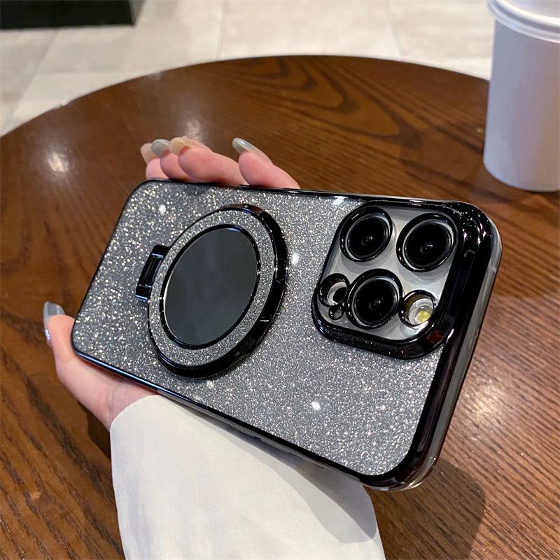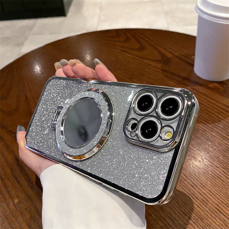 Блестящая пудра против падения для чехла Vivo X100 Pro - полное покрытие из силикона с магнитным креплением и прозрачным зеркальным дизайном