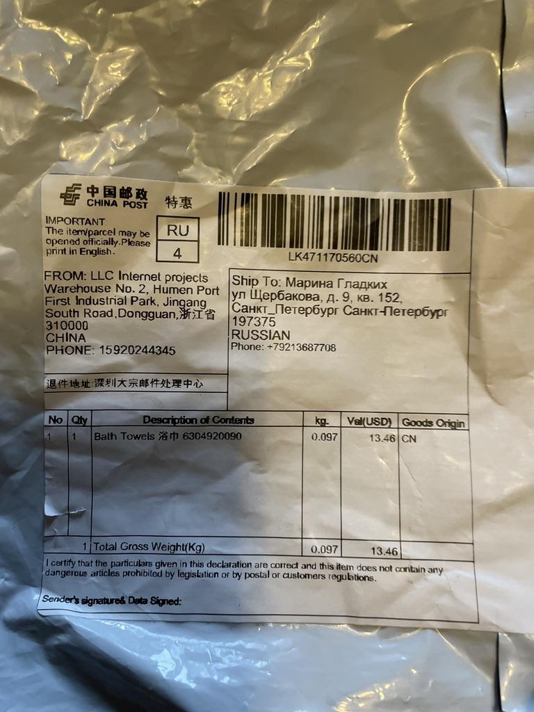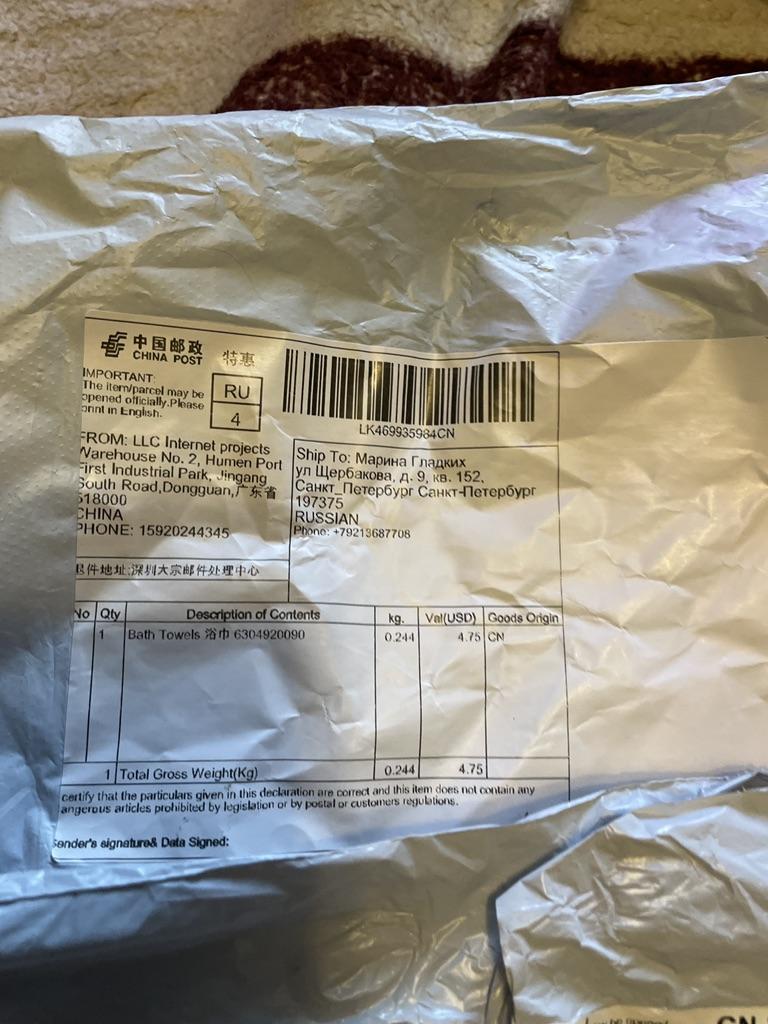 Одно только полотенце пришло! Ужас!