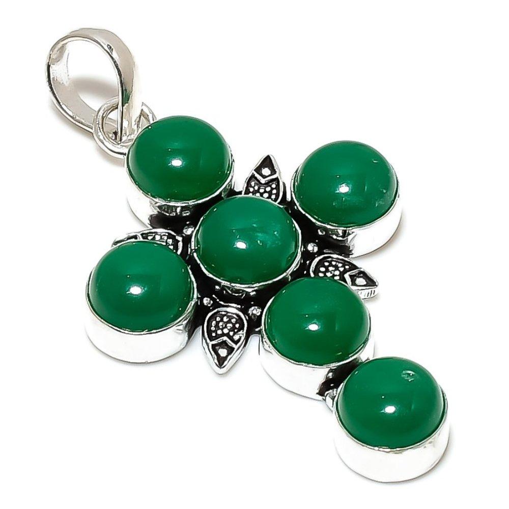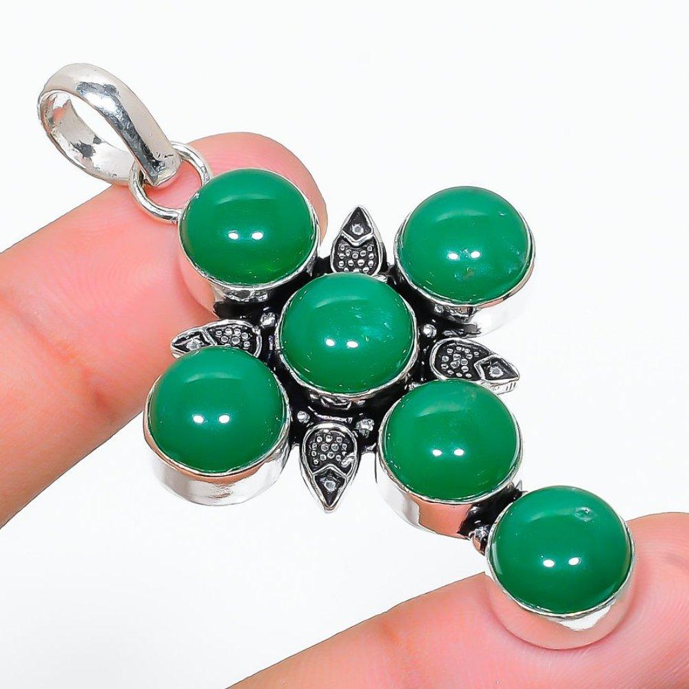 Ювелирный кулон ручной работы из серебра 925 пробы с драгоценным камнем зеленого оникса 2,56 дюйма