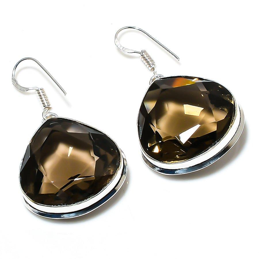Серьги ручной работы из серебра 925 пробы с дымчатым топазом 1,77 дюйма G9I45