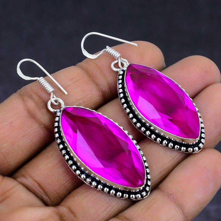 Розовый рубиллит драгоценный камень 925 стерлингового серебра подарочные ювелирные изделия серьги 2.17" O3d91
