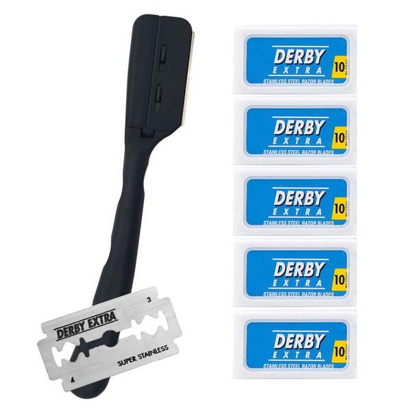 Парикмахерская бритва для Grager двухстороннее лезвие GR-DP + DERBY двухстороннее лезвие 50шт, 1 комплект, корейское бритвенное лезвие