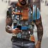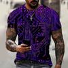 Летняя мужская печатная плата, электронный чип, процессор, креативная графика, футболка с 3d принтом, модный воротник с коротким рукавом, топ больших размеров
