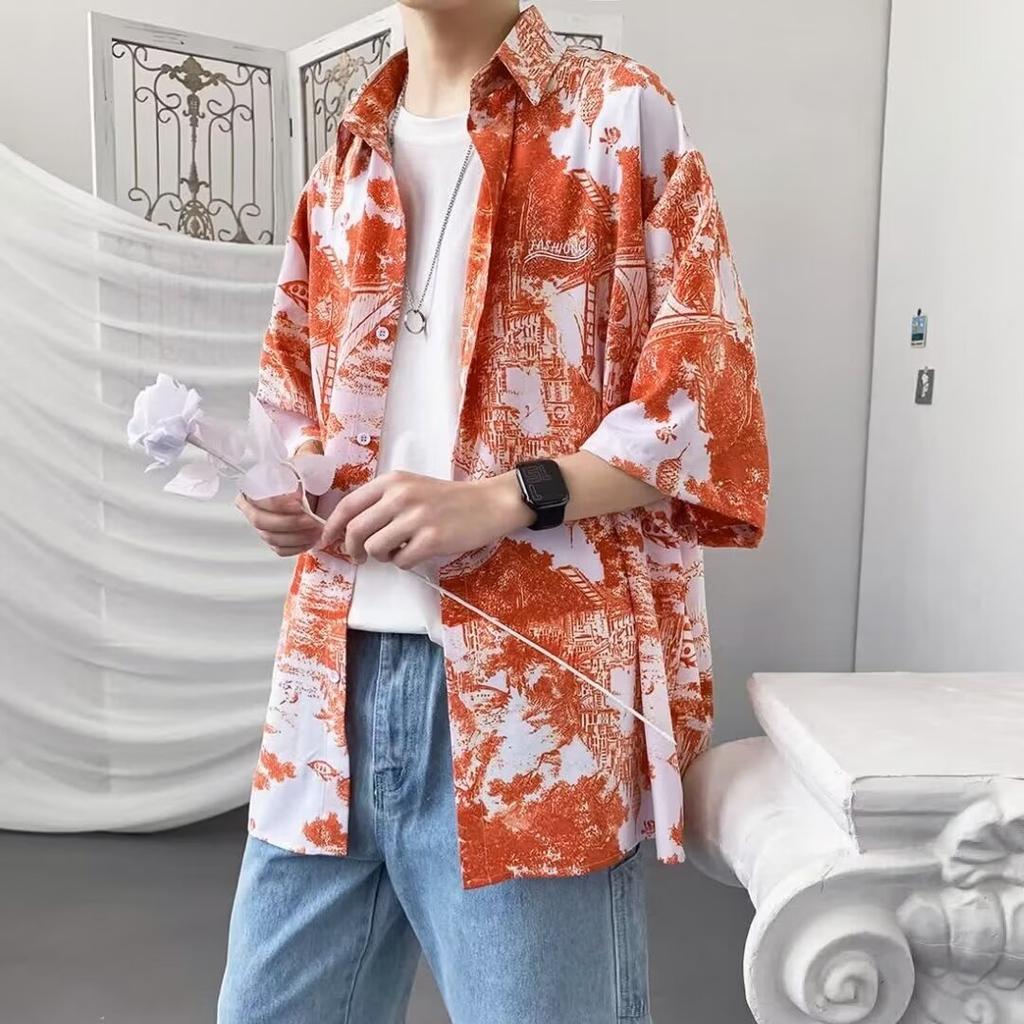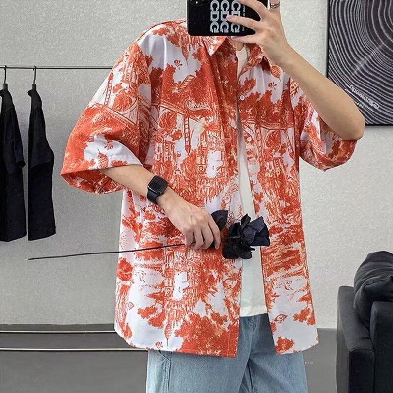 Мужская рубашка в стиле ретро, мужской летний наряд, студенческий свободный крой, нишевый дизайн, повседневный мужской топ, верхняя одежда, пляжный топ