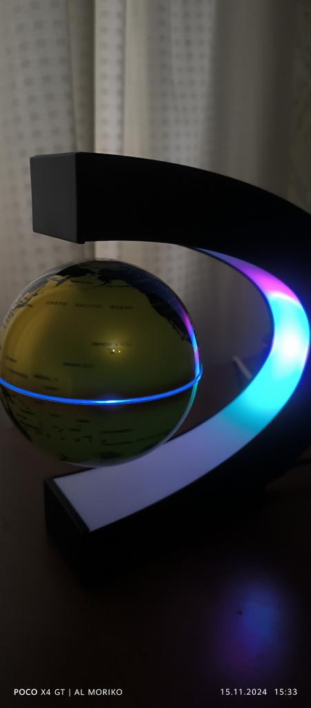 Суперский глобус 😍 Очень понравился 🔥 К сожалению прислали не тот цвет, который заказывала. Должен был быть черный, а в коробке оказался золотой. Подумала сначала, что это я ошиблась и случайно не туда нажала, перепроверила и оказалось, что нет. Но не смотря на это всё полностью в рабочем состоянии. Дефектов никаких нет, глобус левитирует и светится. В комплекте была инструкция, глобус, подставка и сам кабель, а также лопаточка, которая нужна, чтобы установить глобус. В выключенном режиме, к сожалению, не парит. Либо падает сразу, либо примагничивается к подставке. Когда его раскручиваешь, после того, как останавливается, какое-то время начинает вращаться туда сюда, потом останавливается сам ) Отличный ночник и ещё и карта вся точно прописана и прорисована 🌍 Упакован был в 2 коробки, поэтому при транспортировке ничего не повредилось