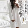 Женская мода Зимний свитер с круглым вырезом из смеси хлопка повседневные плюшевые платья