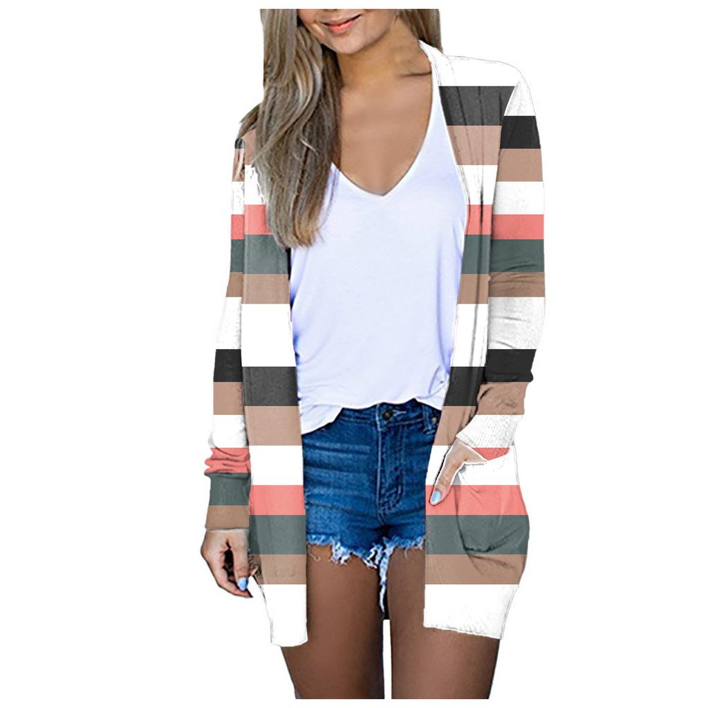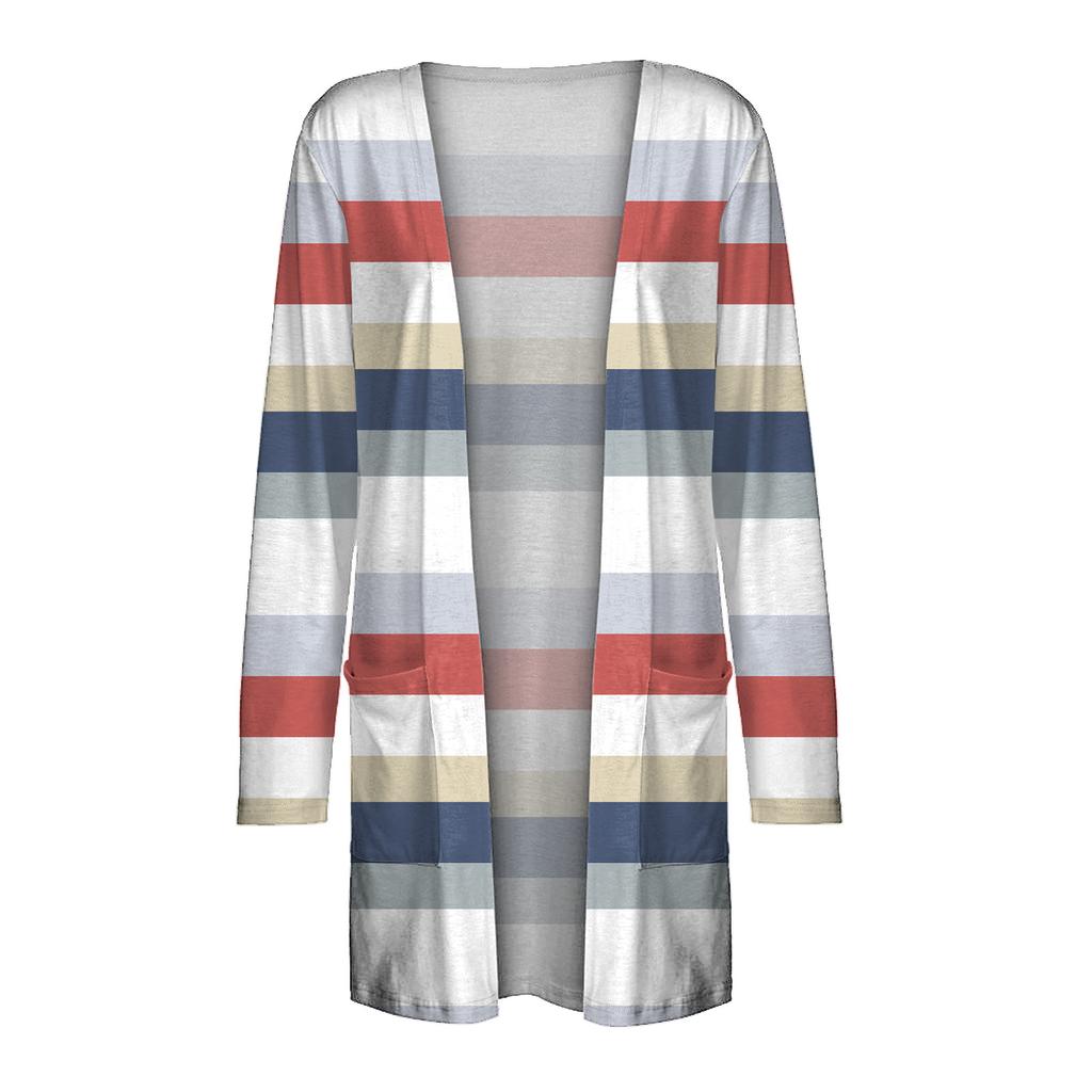 Женский кардиган в полоску с открытым передом и длинными рукавами и карманами, свободное пальто
