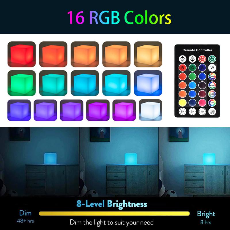 16 цветов светодиодный кубический ночник USB перезаряжаемый настольный декоративный светильник квадратный светильник с контроллером для вечеринки кемпинга