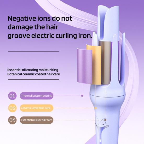 Передовая технология двухслойного ухода за волосами: Ощутите гладкие и блестящие волосы благодаря инновационному дизайну нашей щипцов для завивки из ABS.. Двухслойная технология обеспечивает эффективный уход за волосами, а покрытие из эфирных масел увлажняет волосы, придавая им здоровый блеск.