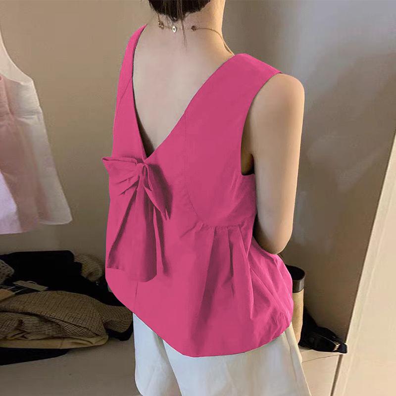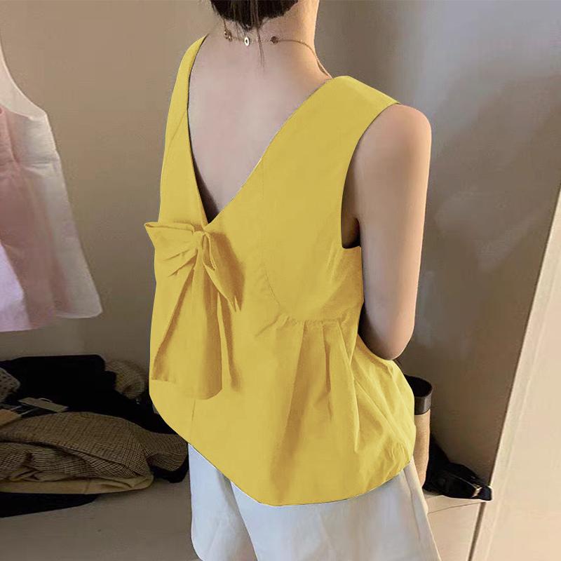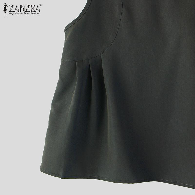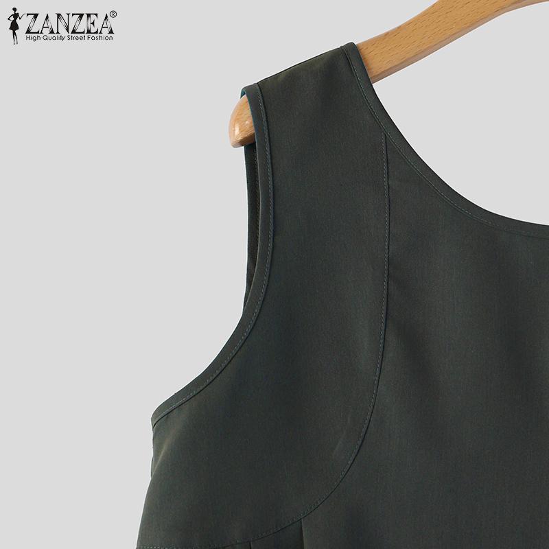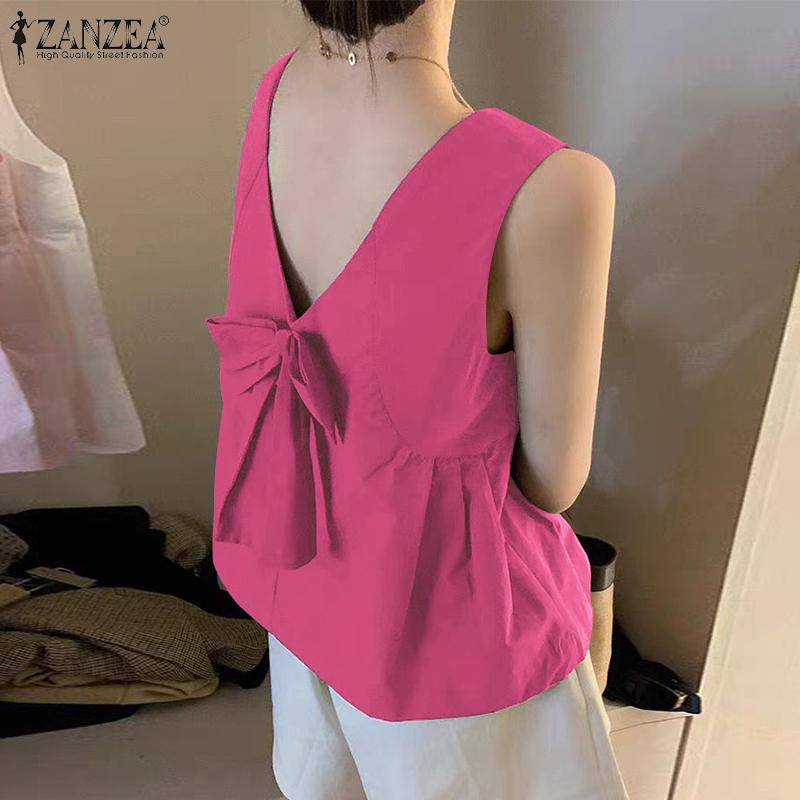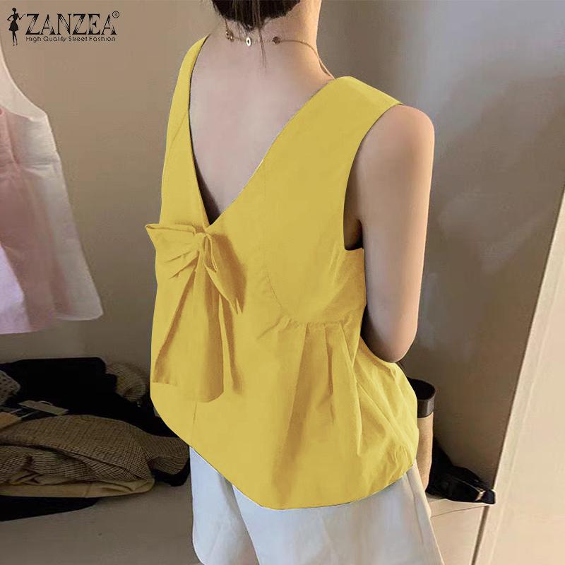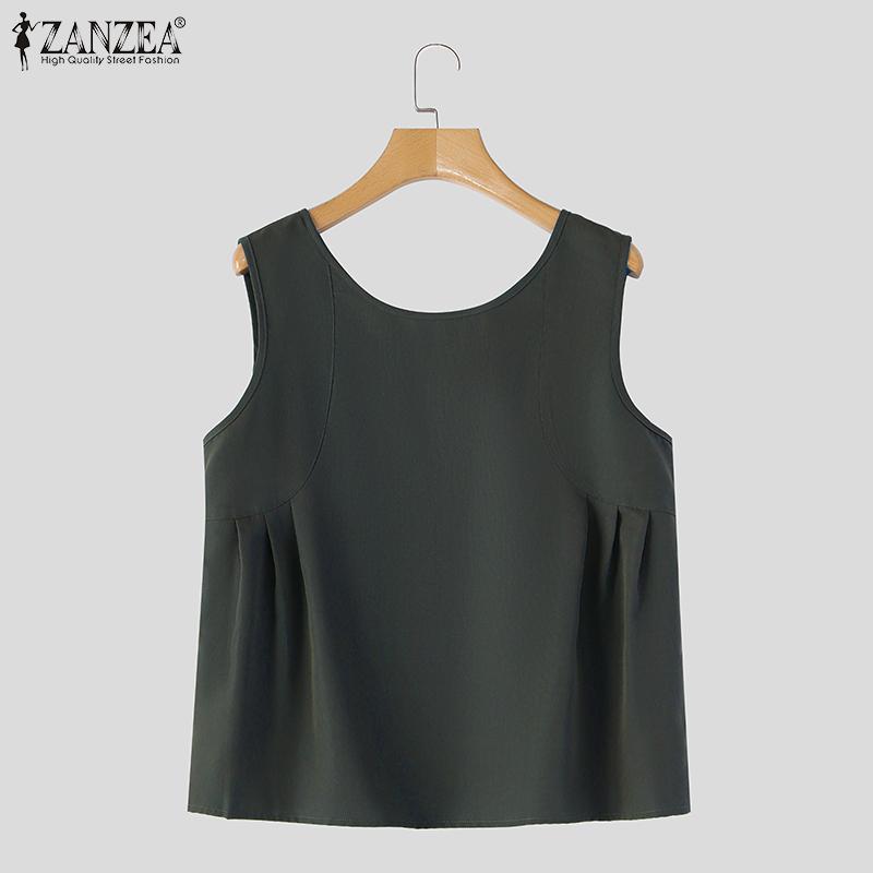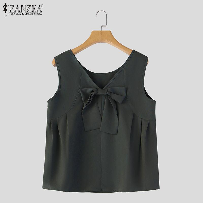 ZANZEA Женские повседневные майки без рукавов с круглым вырезом и свободным завязыванием