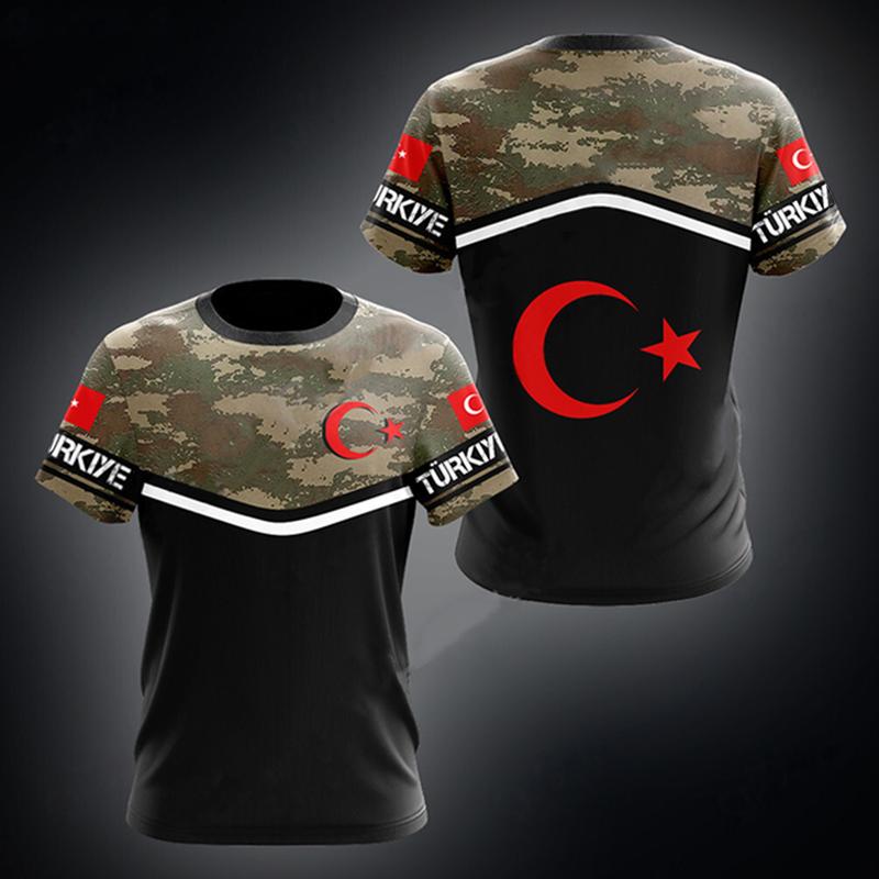 Турецкий флаг, камуфляжный 3d принт, летняя мужская/женская футболка с круглым вырезом, повседневный пуловер большого размера с короткими рукавами, модная мужская одежда