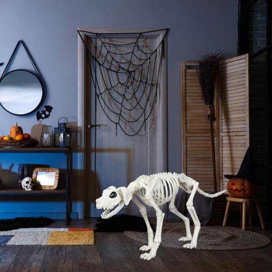 ГИБКАЯ КОНСТРУКЦИЯ: Наслаждайтесь универсальными вариантами украшения: собакой-скелетом с гибким хвостом, подвижной головой и челюстью, позволяющей менять позы и композиции.