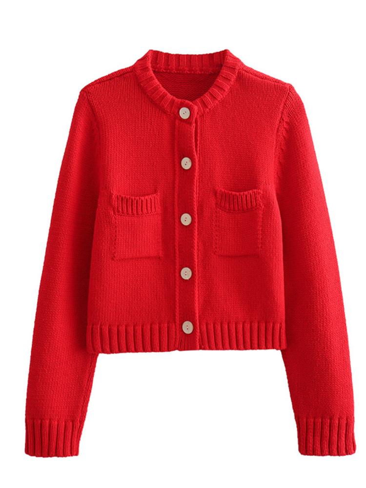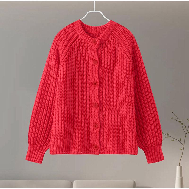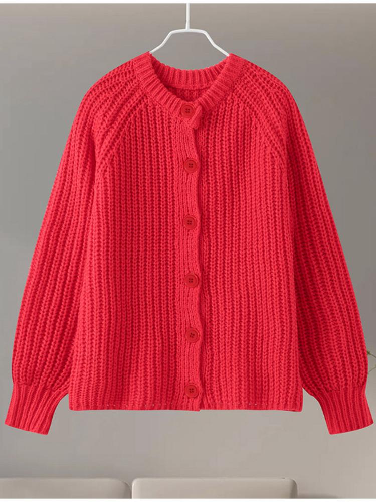 Однобортный кардиган с круглым вырезом, трикотажное пальто для женщин, весна-зима, однотонный теплый свитер с длинным рукавом