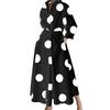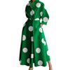 МОДА Женское весенне-осеннее платье с отворотом, V-образным вырезом, подходящим по цвету, обтягивающее, с высокой талией, длиной до середины икры, А-силуэта, со свободным подолом, с принтом, для дам, для поездок на работу и вечеринок, миди-платье