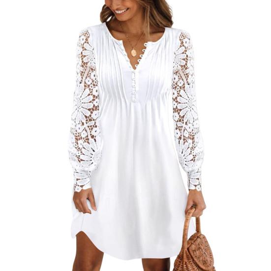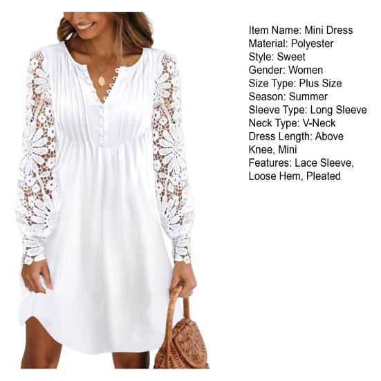 Женское мини-платье с кружевным рукавом-фонарем и плиссированным дизайном, которое может подарить ваше сладкое очарование и заставить вас стать центром внимания коллег.