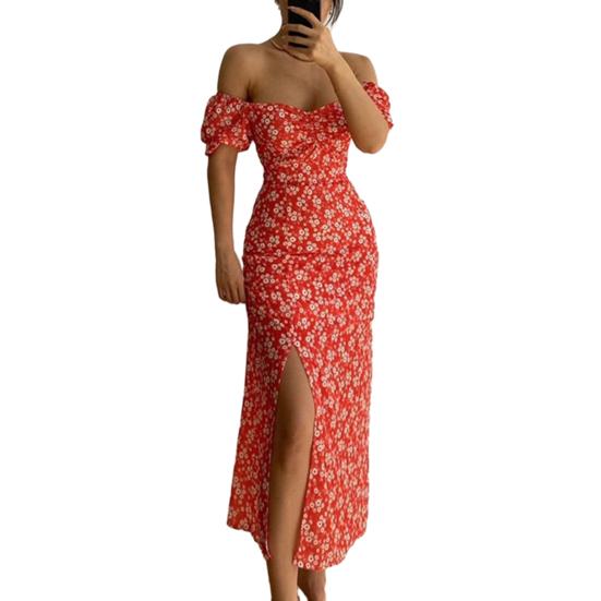 МОДНОЕ женское платье с высокой талией и открытыми плечами, с глубоким вырезом, летнее сексуальное облегающее платье с цветочным принтом и силуэтом макси для леди — купить товар онлайн с бесплатной доставкой до всему миру!