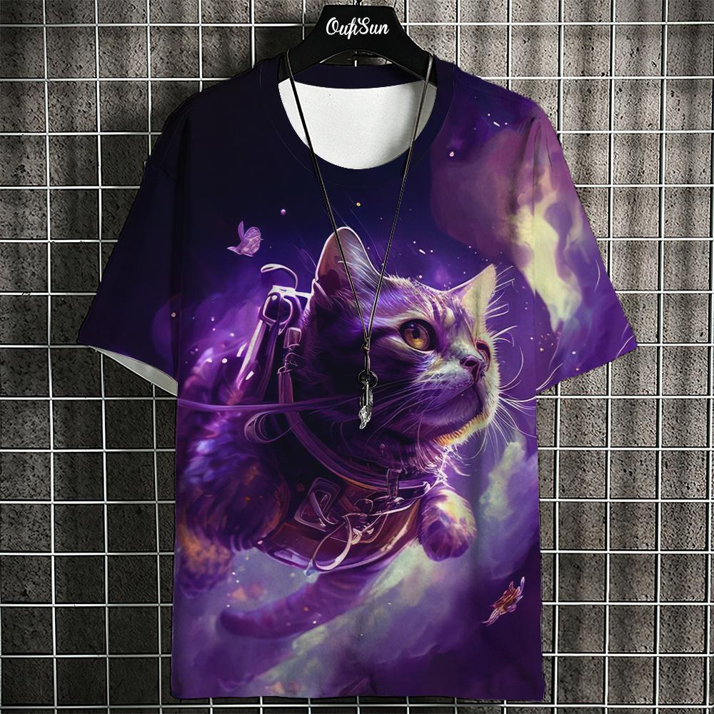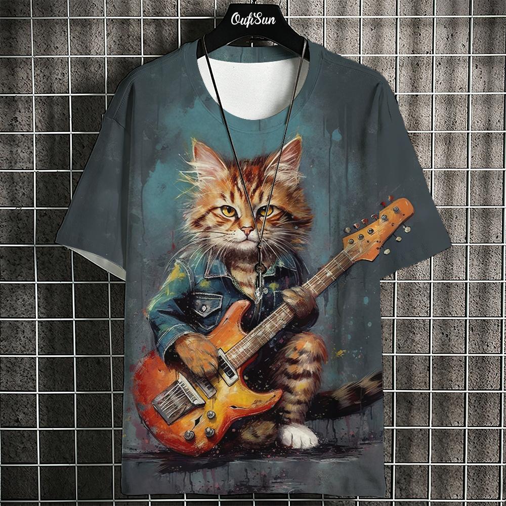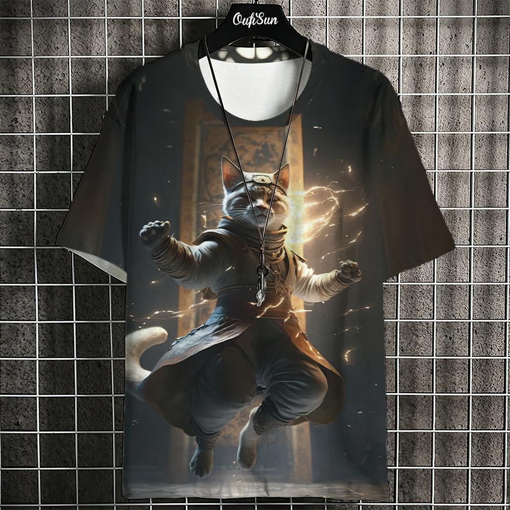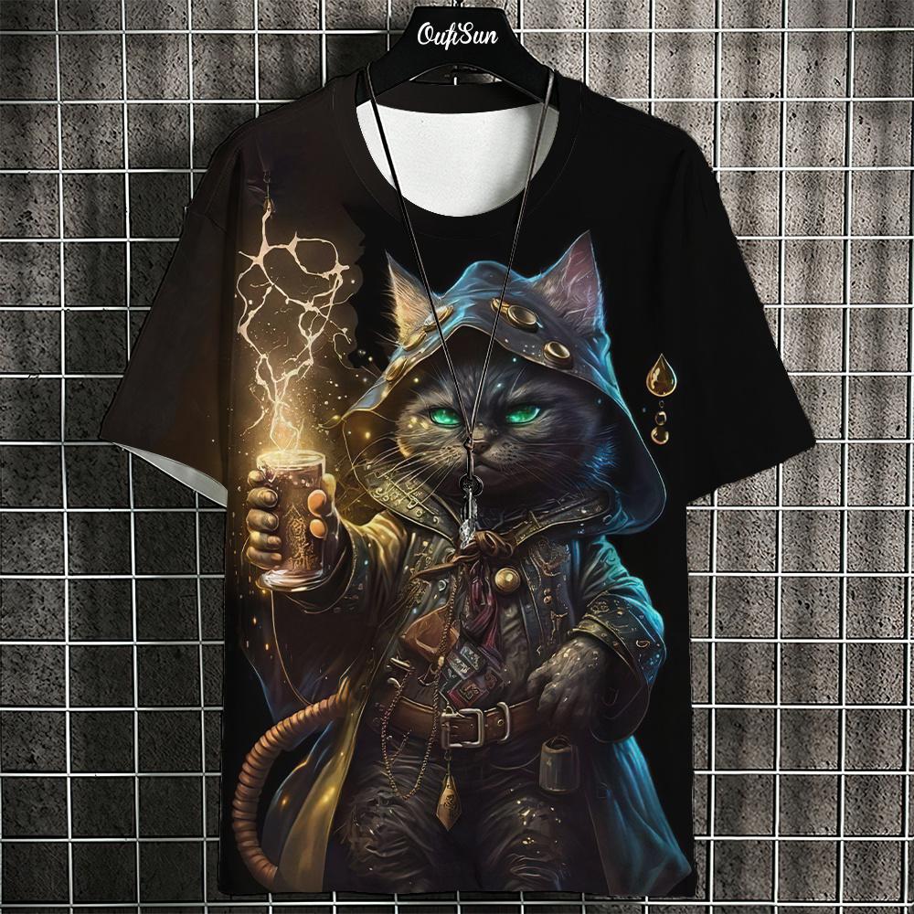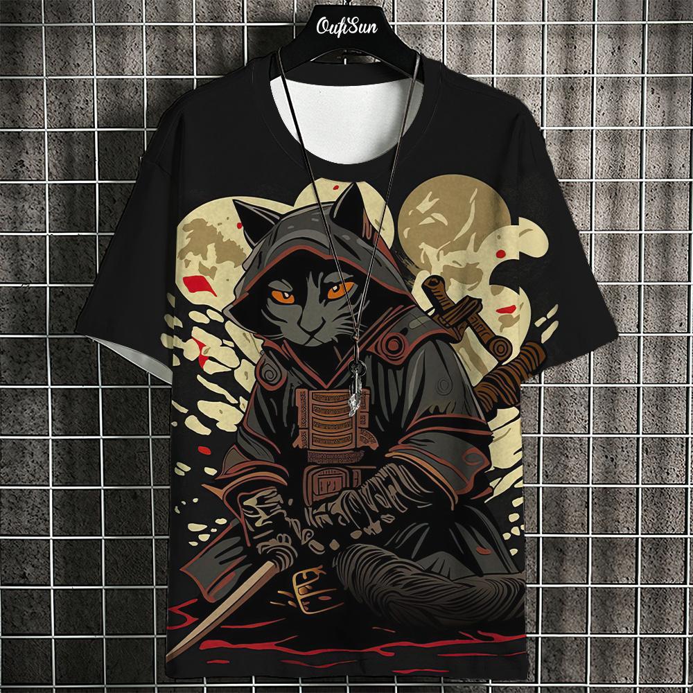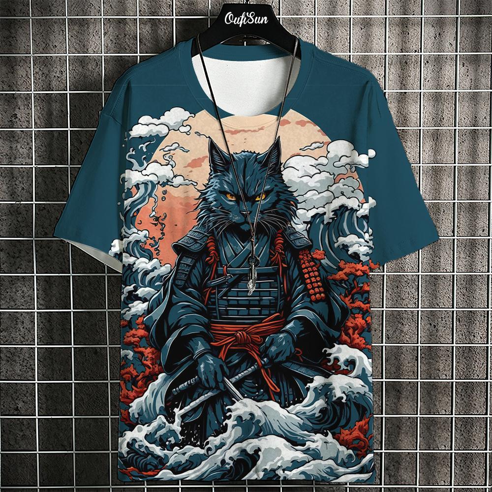 Футболка мужская с изображением животных из мультфильмов, футболки с принтом кошек в японском стиле, повседневные свободные футболки с коротким рукавом, свободная мужская одежда, топы