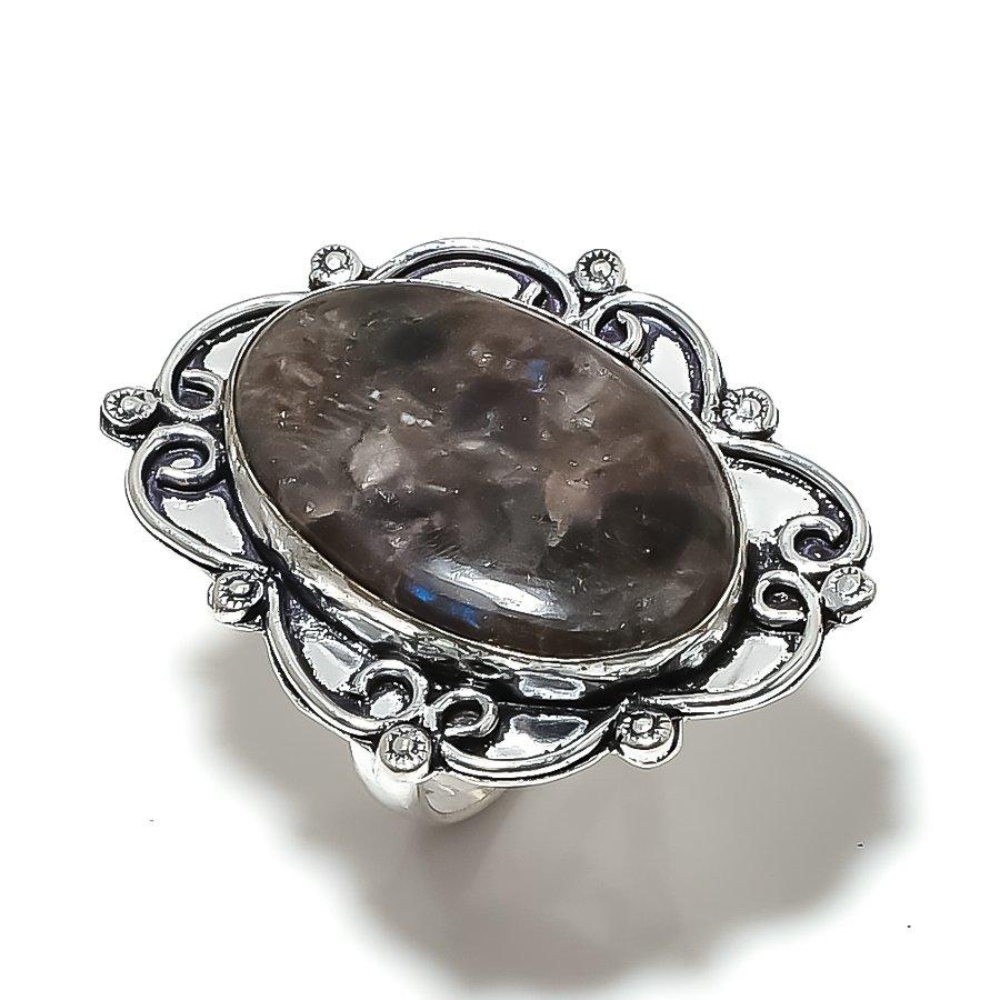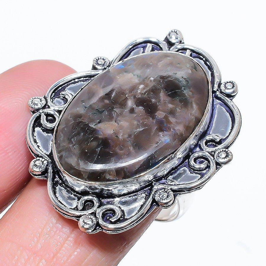 Larvikite Stone Gemstone Handmade 925 Sterling Silver Jewelry Ring Size 9 p7b06