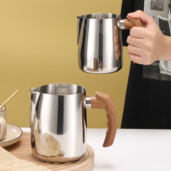 Прочный и легко чистится: Этот кувшин для латте, изготовленный из высококачественной нержавеющей стали, имеет гладкую поверхность, которую не только легко мыть, но и можно мыть в посудомоечной машине.. Прочные сварные соединения между корпусом чашки и ручкой обеспечивают долговечность и долговечность при ежедневном использовании.