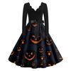 Расклешенное платье с принтом Хэллоуина для женщин Платье с длинным рукавом Повседневные платья