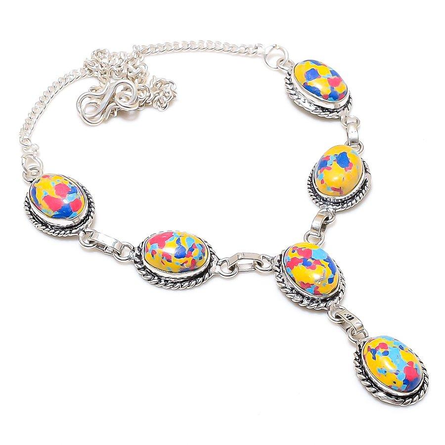 Mosaic Jasper Gemstone 925 Sterling Silver Jewelry Necklace 18 Q3E48 — купить товар онлайн с бесплатной доставкой по всему миру!