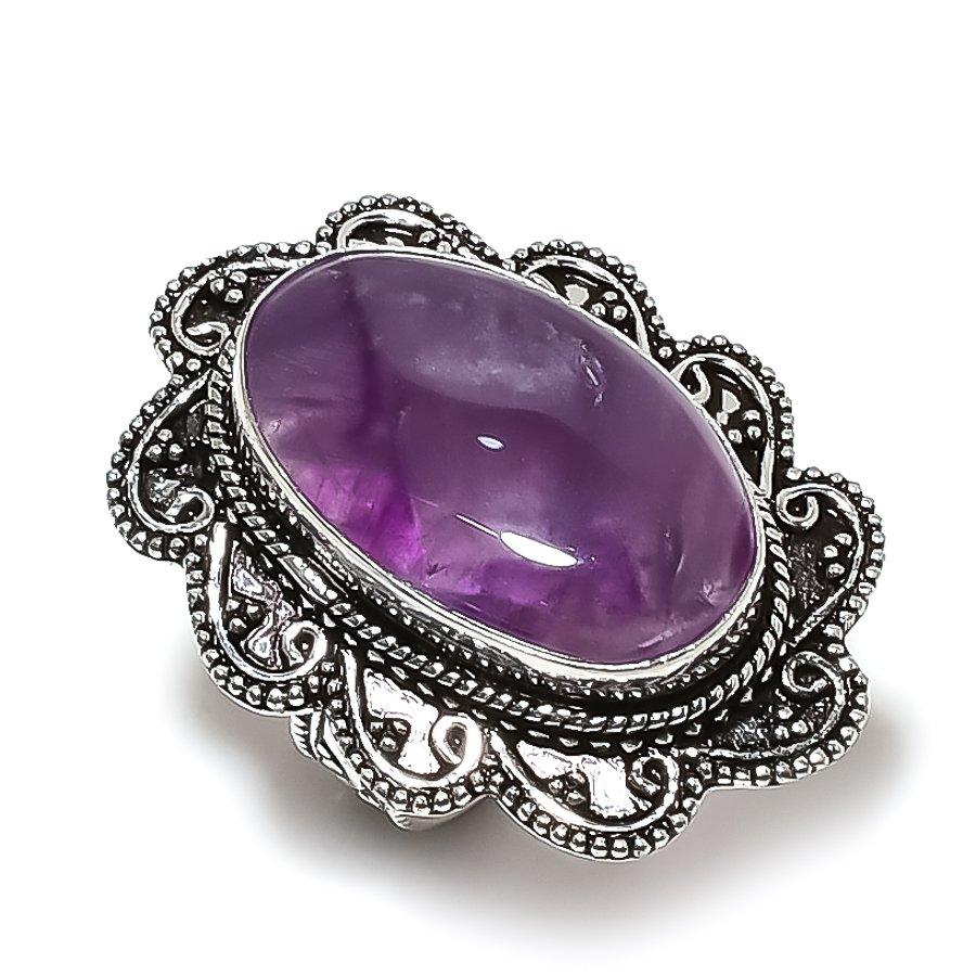 Аметист Шалфея Драгоценный камень Ручной работы Ювелирное изделие из стерлингового серебра 925 пробы Кольцо Размер 6.5 m4Z95