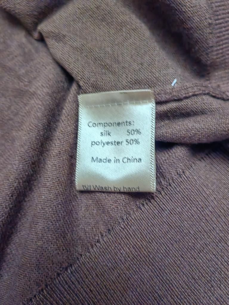 Пуловер скорее, не свитер. Цвет темнее, чем на фото. На ощупь очень мягкий. Состав сырья на вшитой бирке - 50% шёлк, 50% полиэстер.