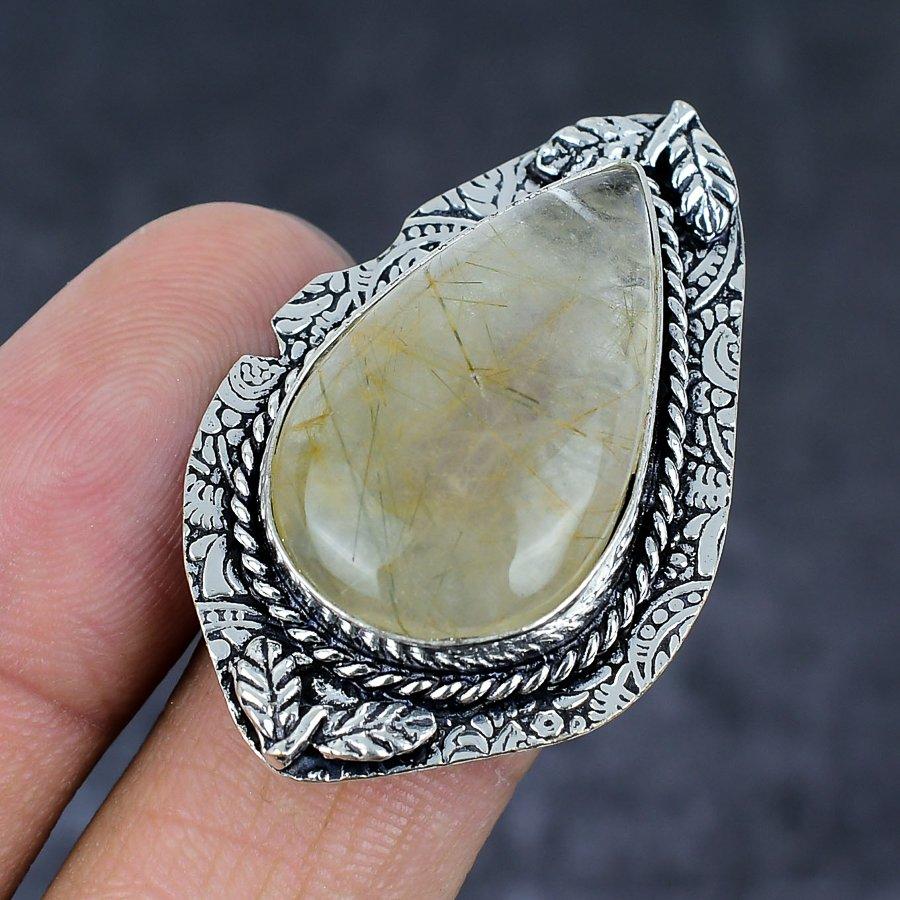 Golden Rutile Gemstone 925 Sterling Silver Jewelry Gift Ring Size 8 e2L66
