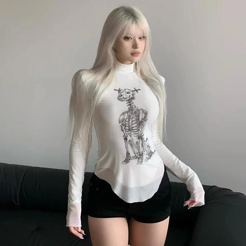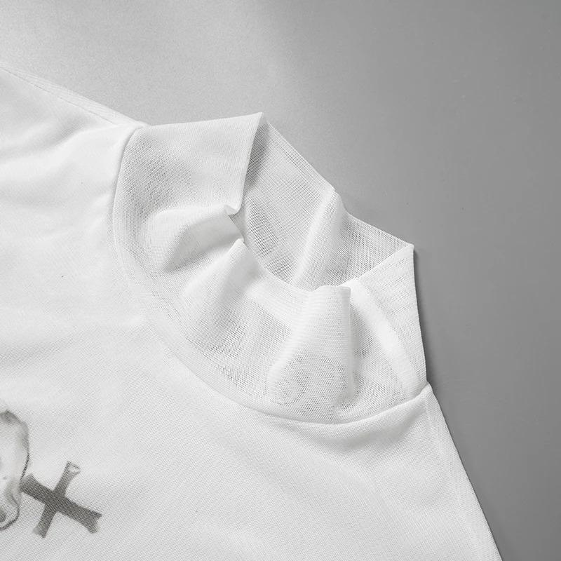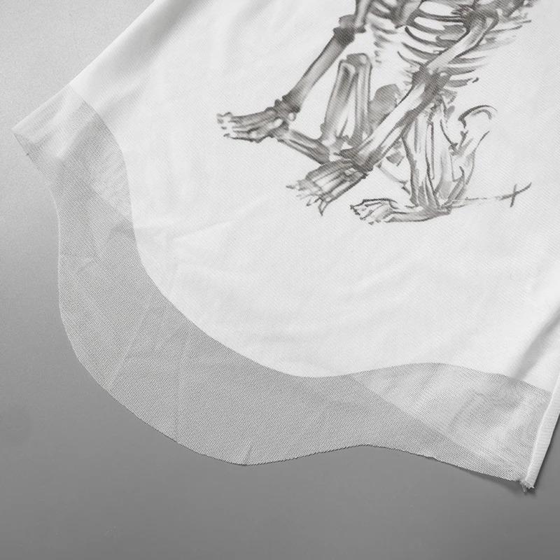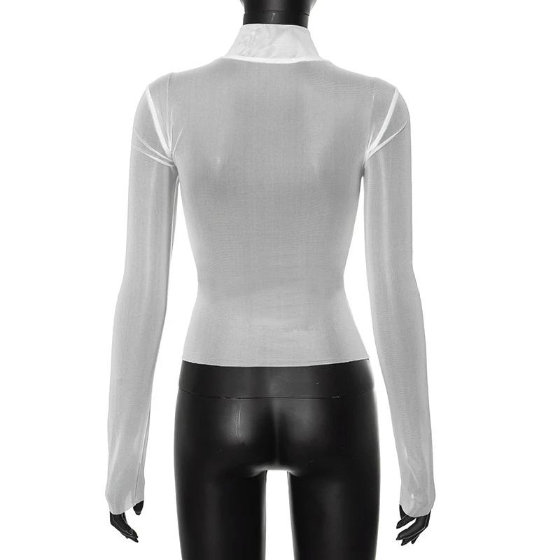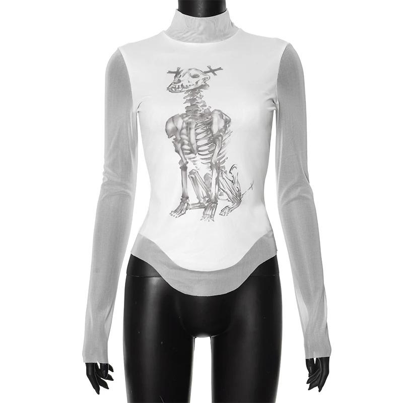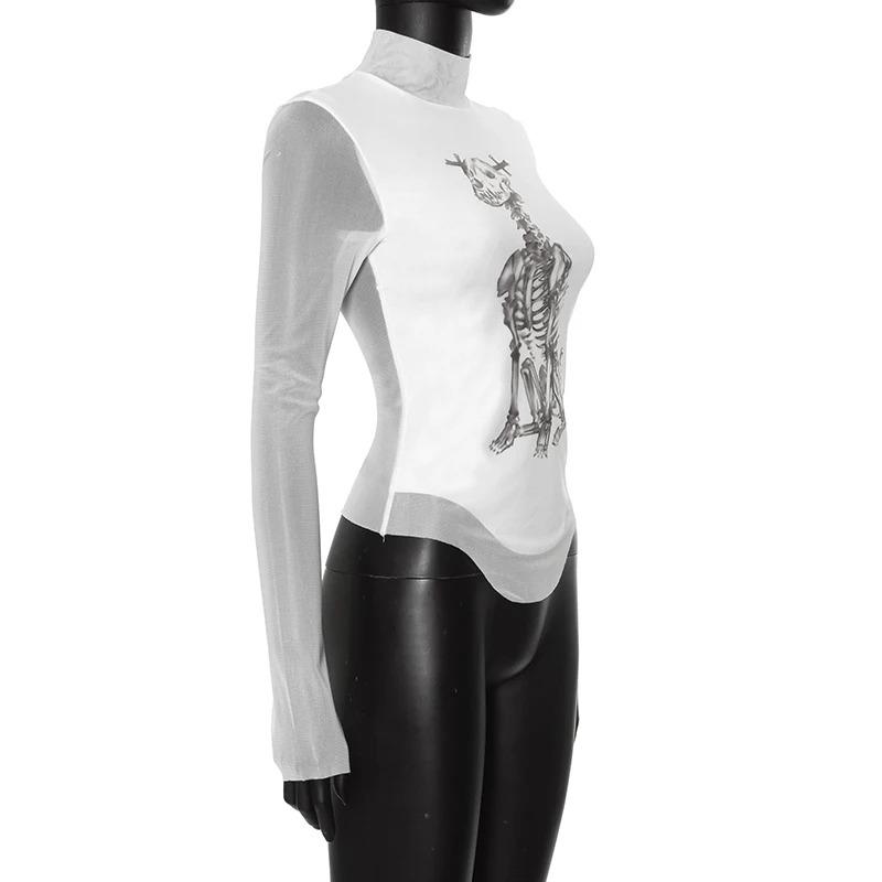 Сетчатый принт, графические футболки, уличная одежда, прозрачная одежда 2000 года, тонкий укороченный топ с длинными рукавами для женщин, винтажный хит
