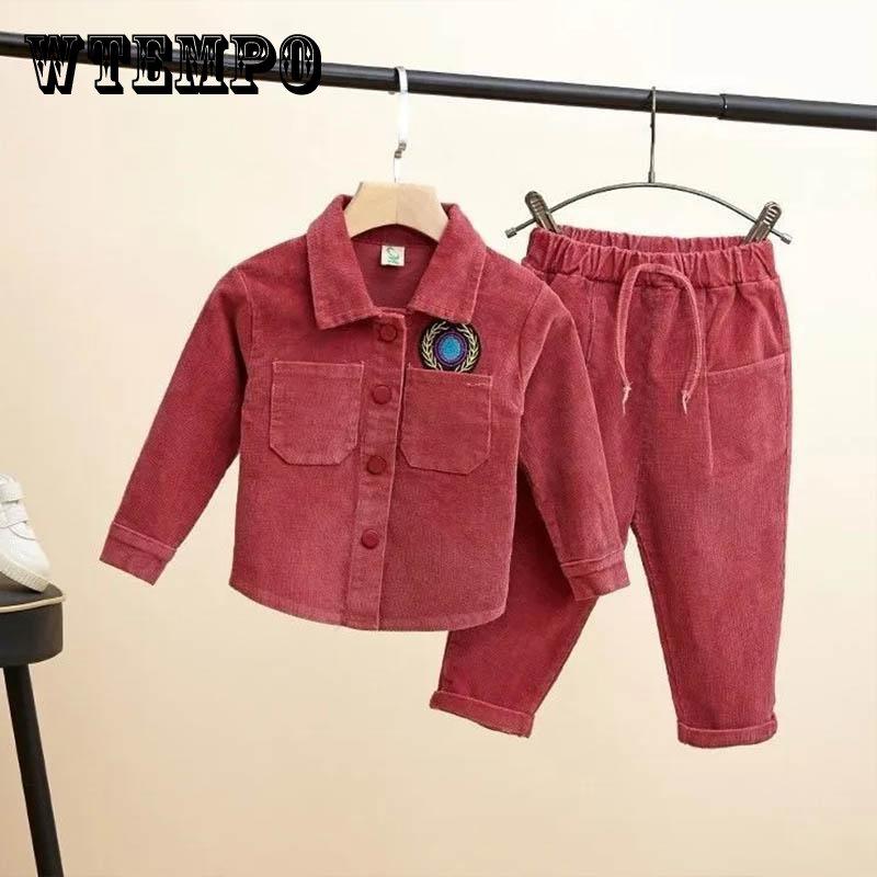 Весенние костюмы для мальчиков и девочек, маленькие и средние дети, весна и осень, От 0 до 6 лет, детская вельветовая однотонная куртка, брюки, комплект из двух предметов