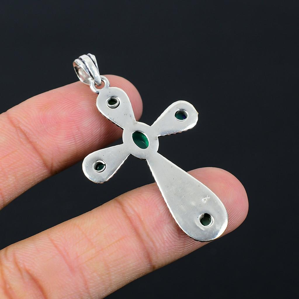 Зеленый Оникс Драгоценный Камень Ручной Работы 925 Стерлинговое Серебро Подарок Подвеска Крест 2.10" g2d66