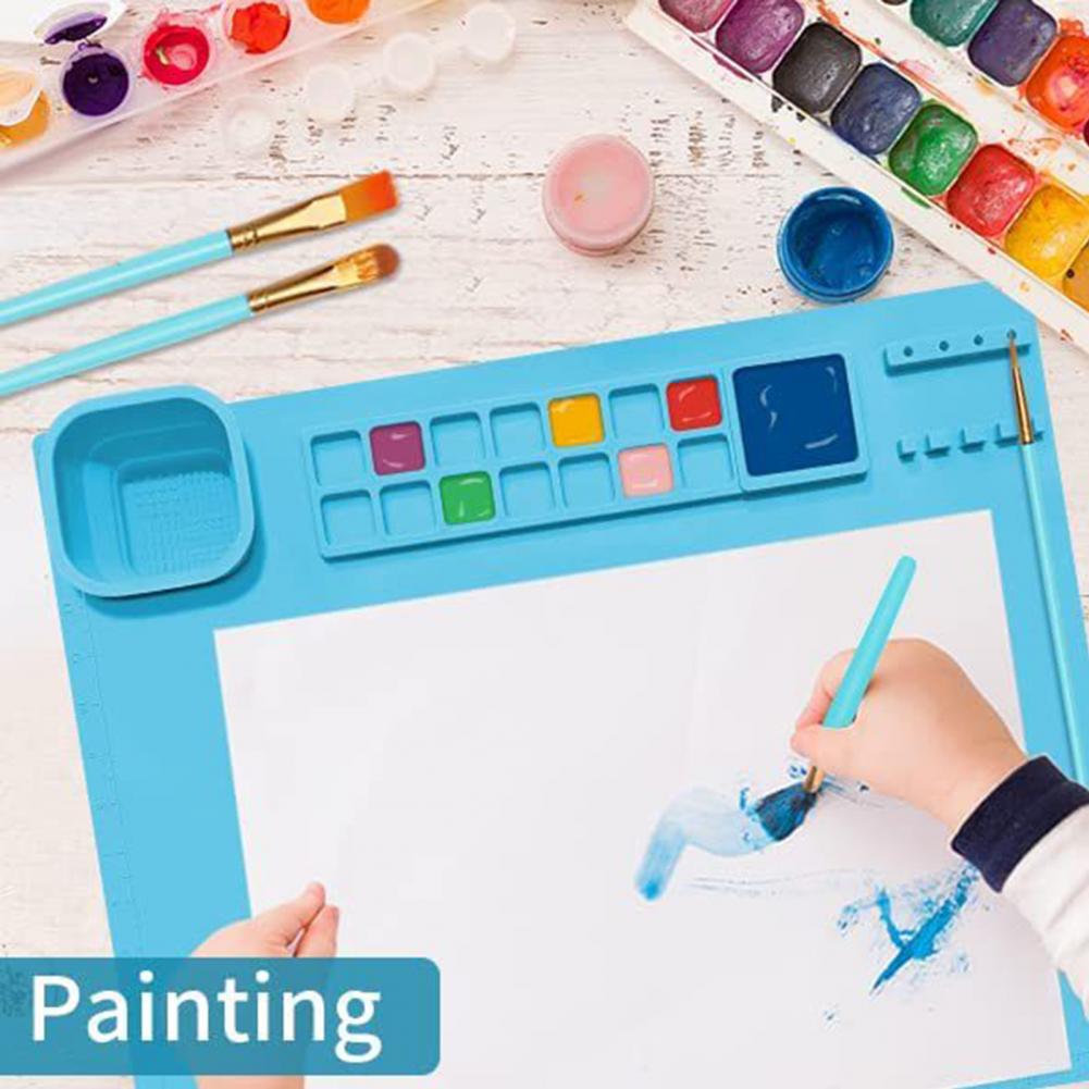 Коврик для рисования, антипригарный силиконовый художественный коврик с чашкой для мытья, детская глиняная доска для рисования граффити «сделай сам», с держателем кисточки для художника