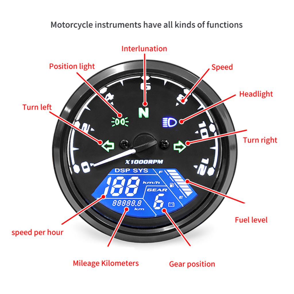 Для скутера CG125 мотоцикл спидометр тахометр панель приборов круглый измеритель скорости светодиодный индикатор аксессуары универсальный 12 В