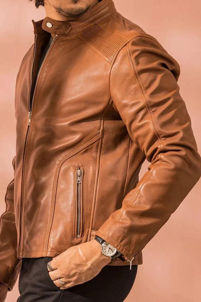 Стильная куртка TAN из натуральной овчины ручной работы, новая, для мотоциклиста, мужская — купить товар онлайн с бесплатной доставкой по всему миру!