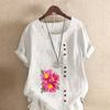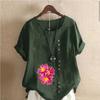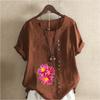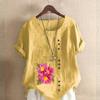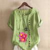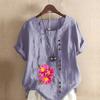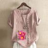 Женская модная футболка с цветочным принтом и круглым вырезом, с коротким рукавом, повседневная хлопково-льняная рубашка с рисунком, свободная летняя блузка для отдыха, топы