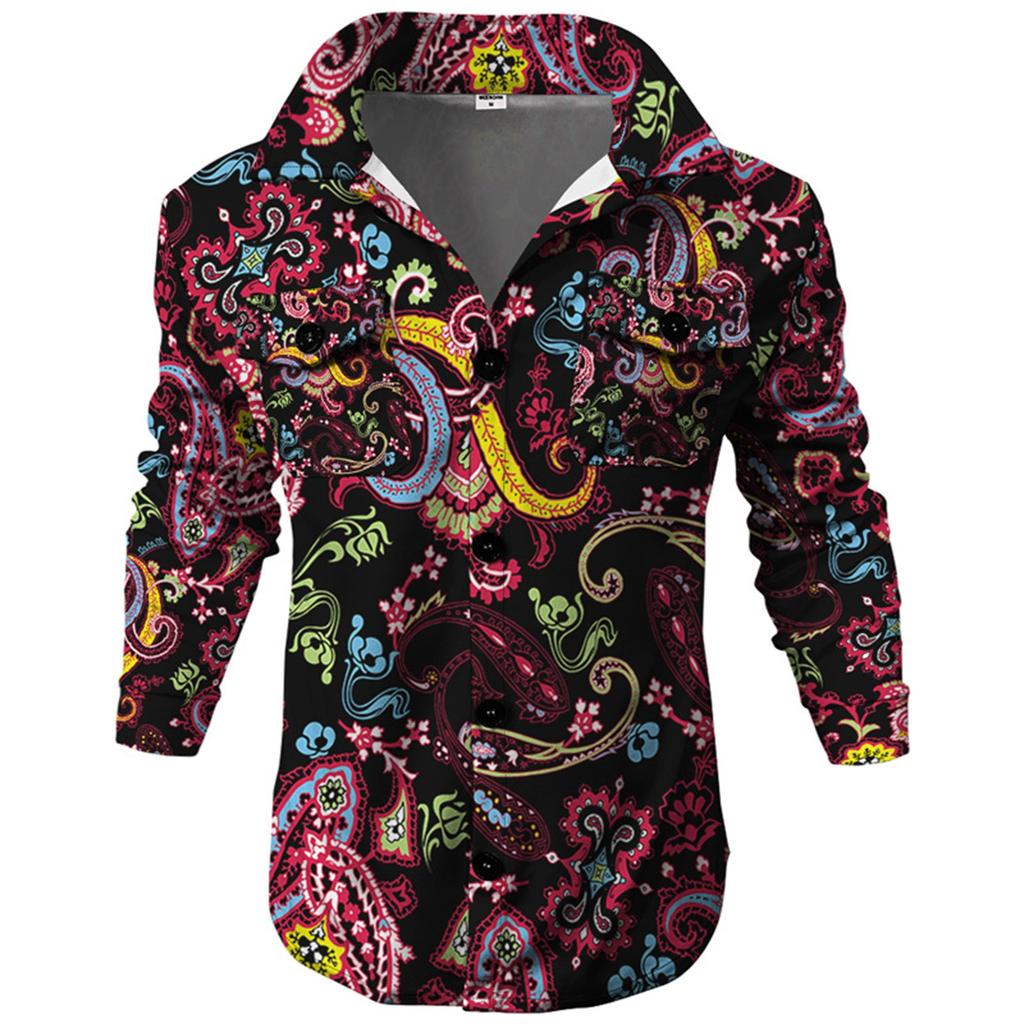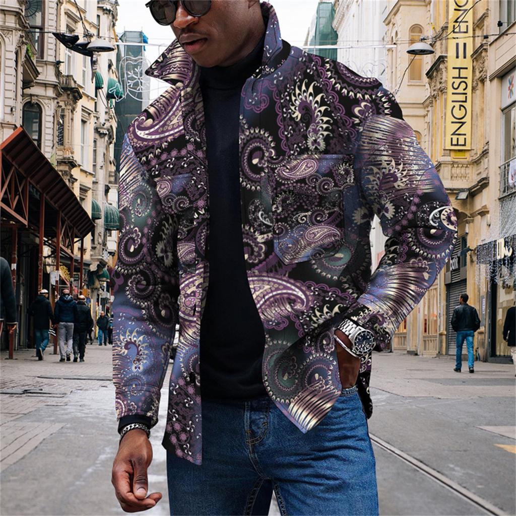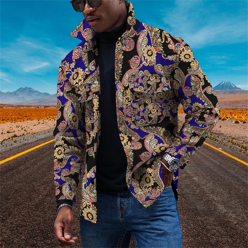 Мужская модная тенденция, повседневная повседневная куртка на пуговицах с длинным рукавом с принтом