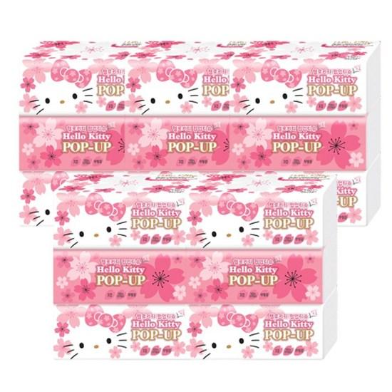 Hello Kitty Салфетка складная 3-слойная, цветущая вишня, 110 листов, 15 штук, популярный персонаж в Корее