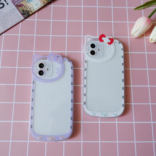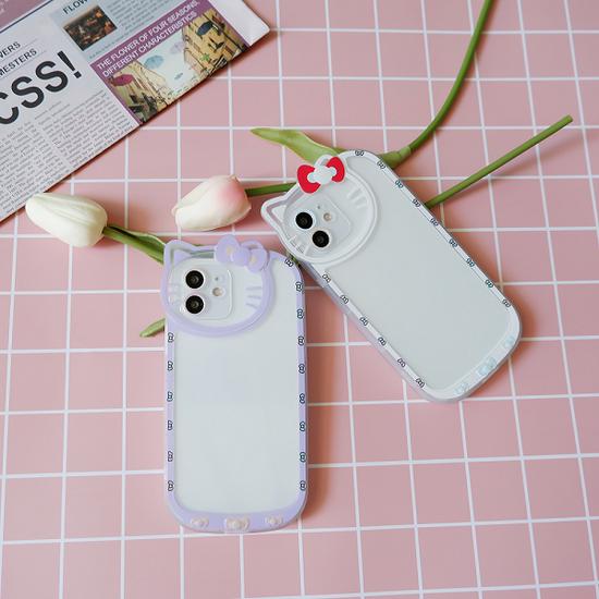 New York Market iPhone Hello Kitty Ribbon Strap Mirror Mirror Transparent Jelly Case, популярный персонаж в Корее