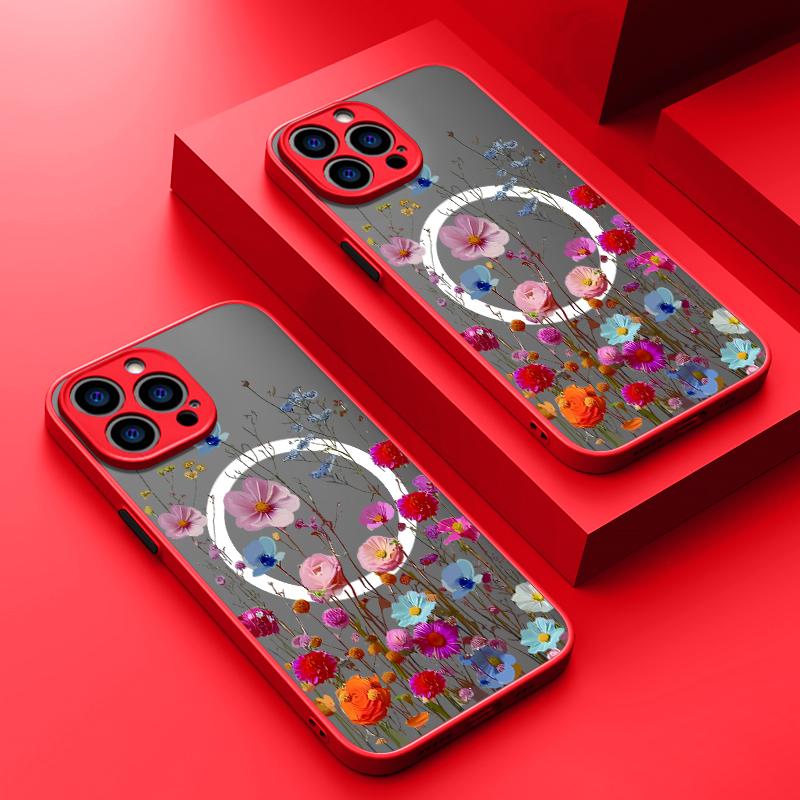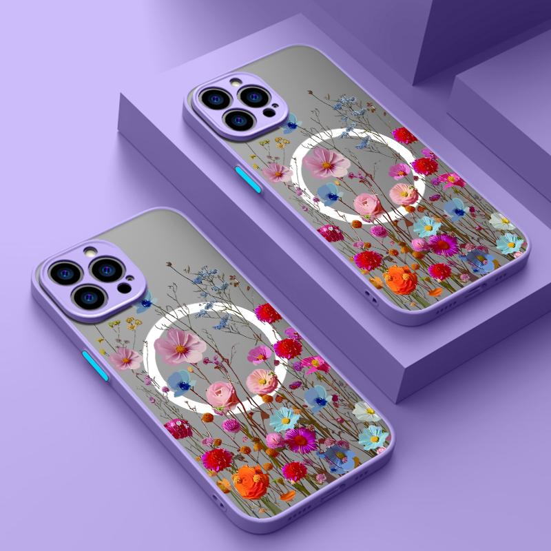 Ударопрочный акриловый чехол для телефона с цветочным узором для iPhone с совместимостью MagSafe
