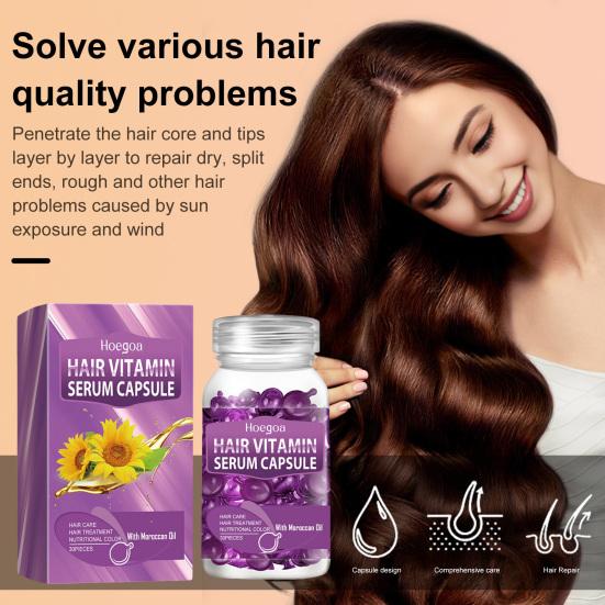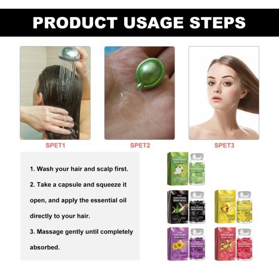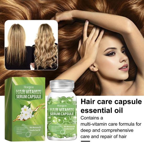 Преобразите свои волосы с помощью наших капсул с сывороткой для волос.. Попрощайтесь с ломкими и сухими волосами: эти капсулы обеспечивают необходимый уход, делая волосы блестящими и легкими в уходе.. Эти капсулы, наполненные мощной смесью эфирных масел для волос, творят чудеса, глубоко проникая в каждый слой ваших волос, устраняя сухость, секущиеся кончики и шероховатость, вызванные воздействием солнца и термической укладкой.. Они создают на поверхности волос защитный, увлажняющий слой, в результате чего пряди становятся шелковистыми, легкими и гибкими, излучающими сияющий блеск.