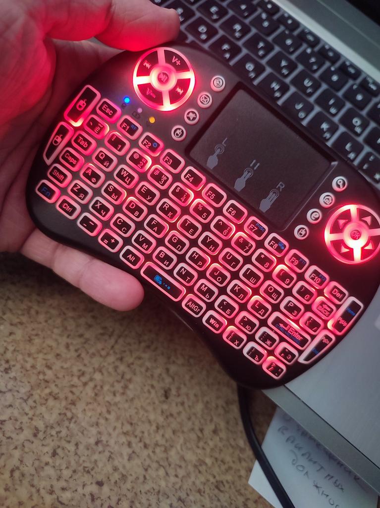 Клавиатура по качеству соответствует своей цене. Стоит аккумулятор съемный как от нокии bc 5c, можно заменить без проблем, если потребуется. При первом включении не запустилась, поставил на зарядку на 15 минут, потом запустилась. Есть три режима подсветки , также можно ее отключить. Для тех, кто захочет пользоваться РУССКОЙ клавиатурой на андроид приставках или телевизорах, необходимо будет заморочится с настройками. Нужно будет в настройках найти устройства, найти подключенную внешнюю клавиатуру и задать ей необходимые языковые настройки.