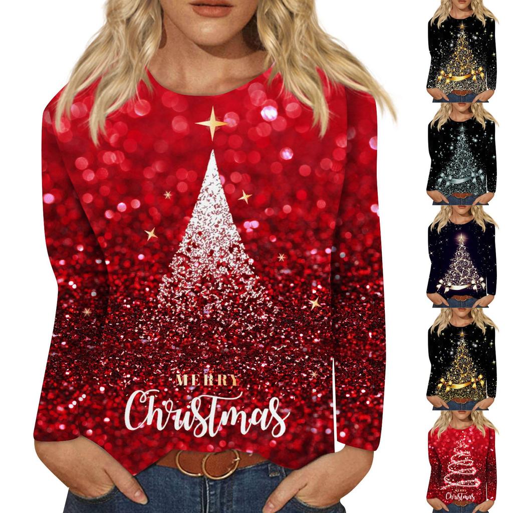 Женская мода, повседневная блузка с длинным рукавом и рождественским принтом, пуловер с круглым вырезом — купить товар онлайн с бесплатной доставкой до всему миру!