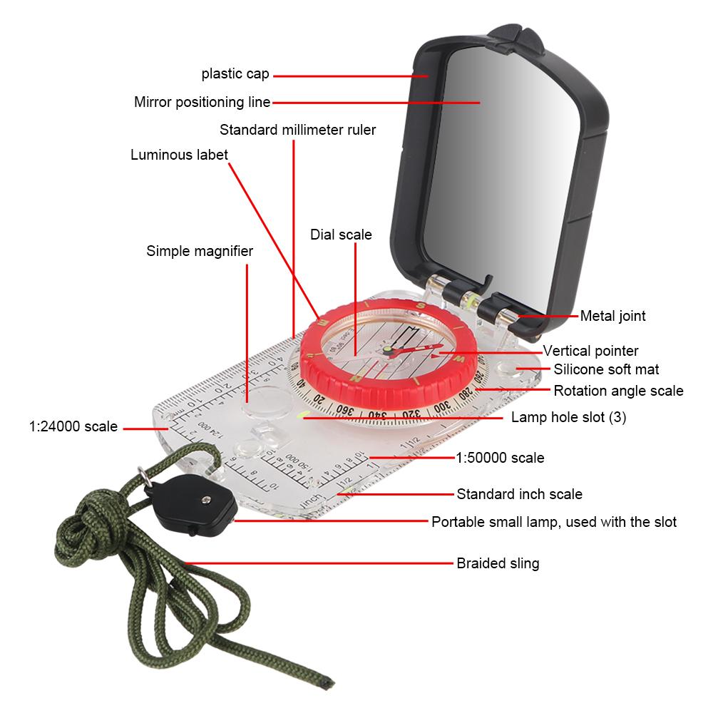 Для походов, кемпинга, выживания, увеличительное стекло, GPS, светящийся водонепроницаемый компас, многофункциональный масштаб, линейка, наружный путеводитель