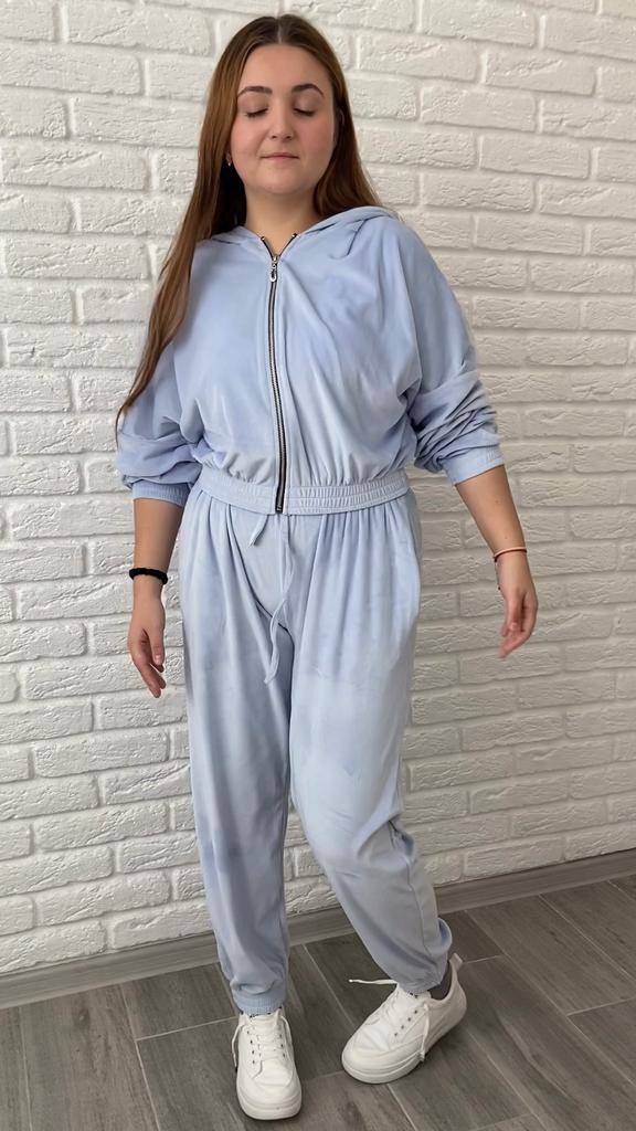 Отличный костюм в безумно красивом цвете 😍 Все детали смотрите на видео 📽 Комфортно Молодёжно Качественно Недорого Да, всё про этот костюм! А цает просто нежнятина 😍 В этой модели кстати кофточка по длиннее, чем у предыдущих, которые я вам уже показывала 😉 На мне размер S. Костюм сел свободно, с запасом по всем параметрам, отлично подойдёт и на высоких, тогда кофта будет чуть короче. Мои параметры 90-65-90см, рост 156см На мне размер S. Замеры размера S: Кофта Грудь 124 см, низ 64 см до 106 см, плечи 83 см, спущеный рукав 48 см, длина по спинке 45 см. Штанины талия 56 см до 100 см, объем бёдер 112 см до 160 см, расстояние до начало промежности 31 см, объем штанины от начала промежности 66 см до 10 см, длина 104 см. Качество супер! Всё ровно и аккуратно пошито. Материал: приятный, уютный, бархатистый, эластичный полиэстер и спандекс, не светит, не электризуется. Очень довольна и смело рекомендую ⭐️⭐️⭐️⭐️⭐️ Ваша Инга 😘