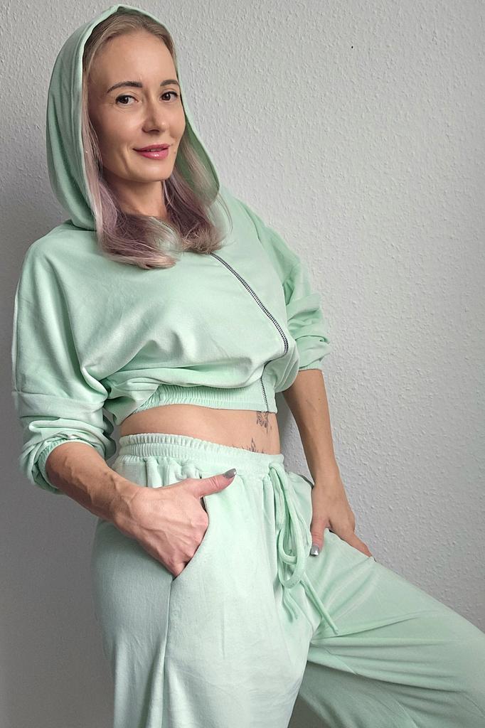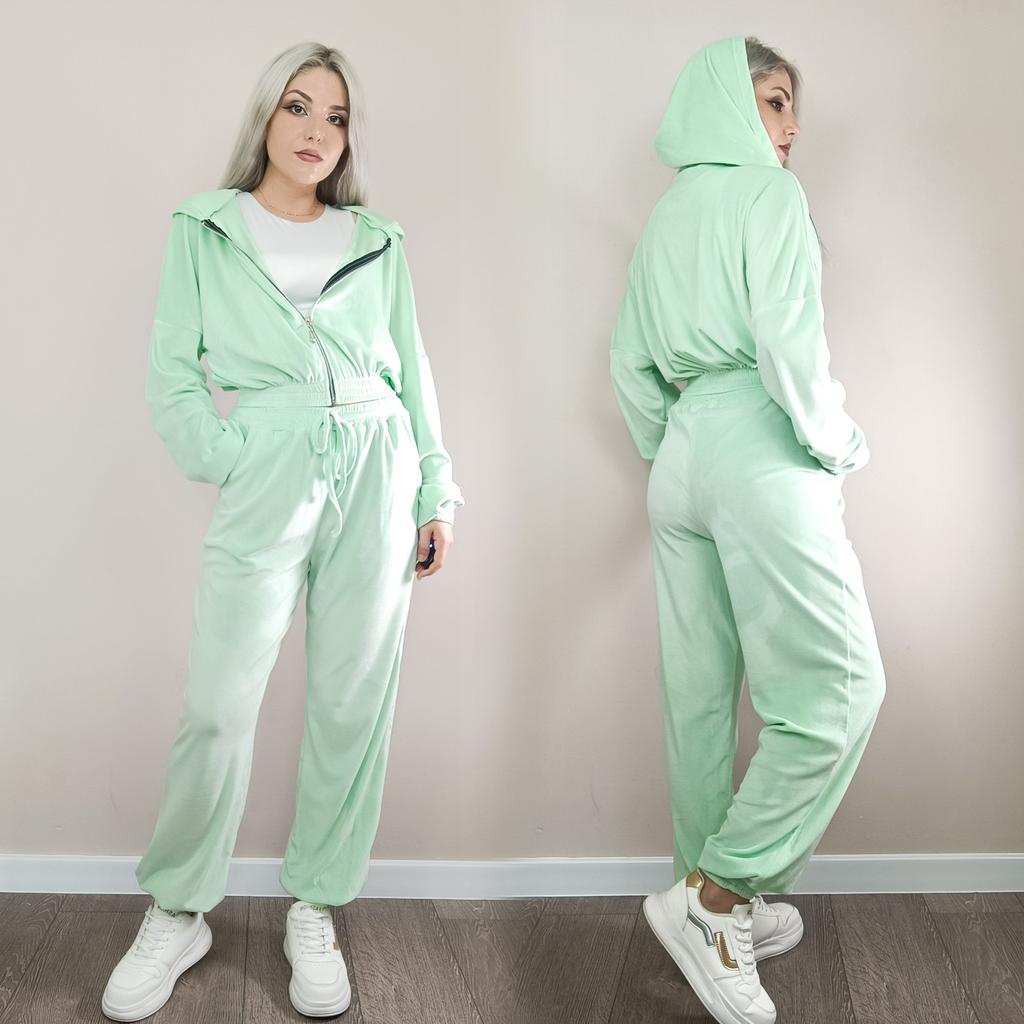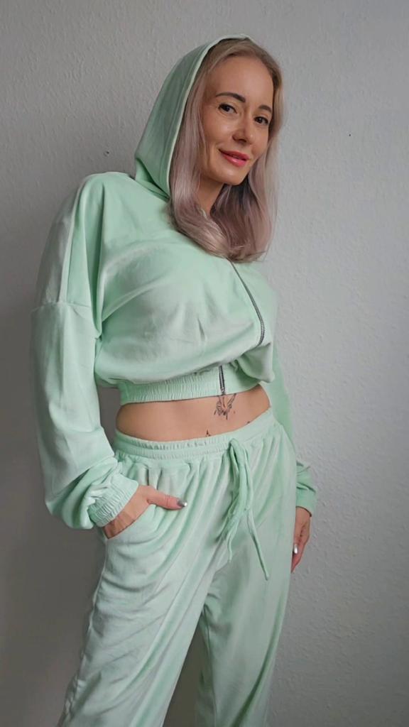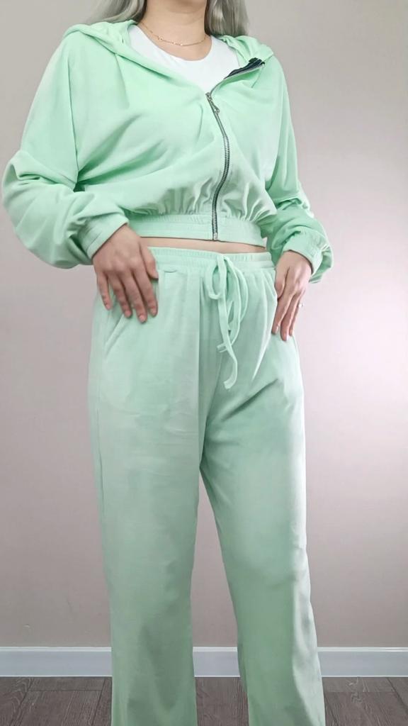 Спортивный бархатный костюм мятного цвета — это современное и стильное решение для активного отдыха и повседневной носки. Этот костюм сочетает в себе элегантность и комфорт, делая его идеальным выбором для тех, кто ценит как стиль, так и функциональность. 🔸На выбор несколько расцветок, а размеры: S-XL. На мне S. - Замеры костюма: - Верх Длина - 48 см ОГ - 140 см Длина рукава - 49 см Ширина плеч - 88 см - Низ Длина - 102 см ОТ - 60-104 см ОБ - 120 см - Мои параметры: Рост - 164 см ОГ - 86 см ОТ - 67 см ОБ - 95 см 🔸Костюм выполнен из мягкого бархата. Он очень приятный на ощупь, нежный. Бархатный текстиль не только выглядит эффектно, но и обладает хорошими теплоизоляционными свойствами. 🔸Мятный цвет добавляет свежести и яркости, а также легко сочетается с другими элементами гардероба. 🔸Укороченный верх с капюшоном отличается современным дизайном и обеспечивает хорошую защиту от прохлады. Укороченная модель делает акцент на талии и придаёт образу лёгкость и непринуждённость. Капюшон достаточно объемный, что смотрится дорого. 🔸По бокам штанов карманы. Манжеты на резинках обеспечивают плотное облегание по щиколотке, что способствует сохранению тепла и удобству при активных движениях. 🔸К пошиву никаких претензий. Цена качеству соответствует. Рекомендую 👍 Ставлю ⭐⭐⭐⭐⭐ Большое спасибо продавцу ❤️ и Joom ❤️