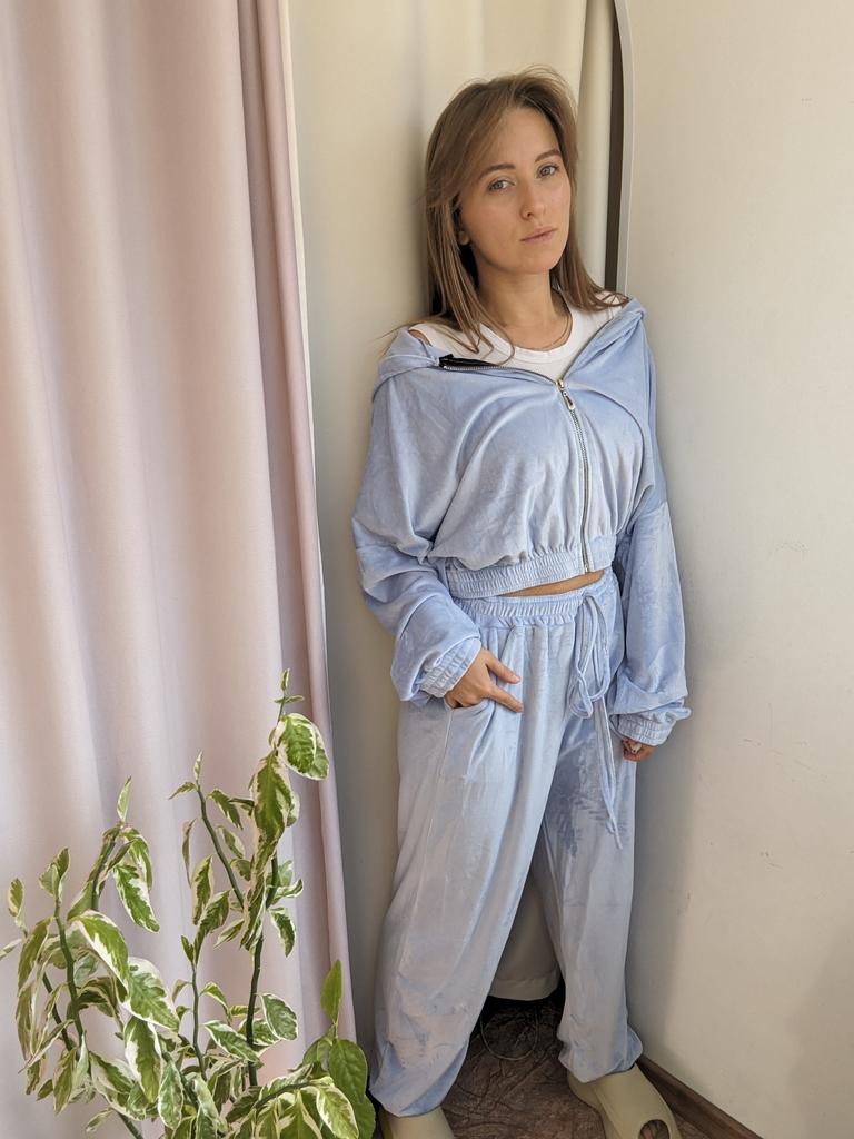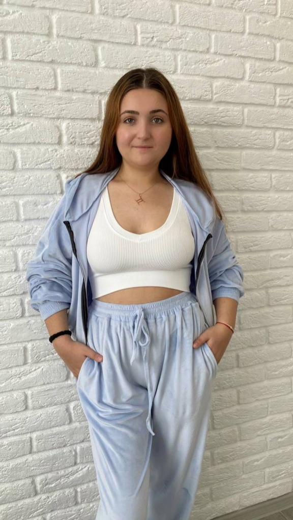 Модный костюмчик за 1800р😍🌼 Пришел за 12 дней в Саратов. Трек живой. Качество обычное фабричное, все ниточки на месте, не придерешься совсем. Легкий, очень мягкий и приятный к телу. На весну-осень самое то! Под куртку, кожанку, тренч. На мне размер L По размеру на мои параметры сел хорошо, свободно. Как и задумано. Суперски завышенная талия и плотная резинка, которая ещё и утягивается на шнурок . Подойдёт девочка от 40 до 44 размера включительно. Рукава не короткие даже запас есть. Штаны на рост до 170. У меня 161 см Цвет голубой. У продавца на выбор 4 расцветки. Я с футболкой в +18 в нем чувствовала себя очень комфортно❤️ В общем и целом я оочень довольна заказом. Всем точно рекомендую к покупке ♥️ Не пожалеете)