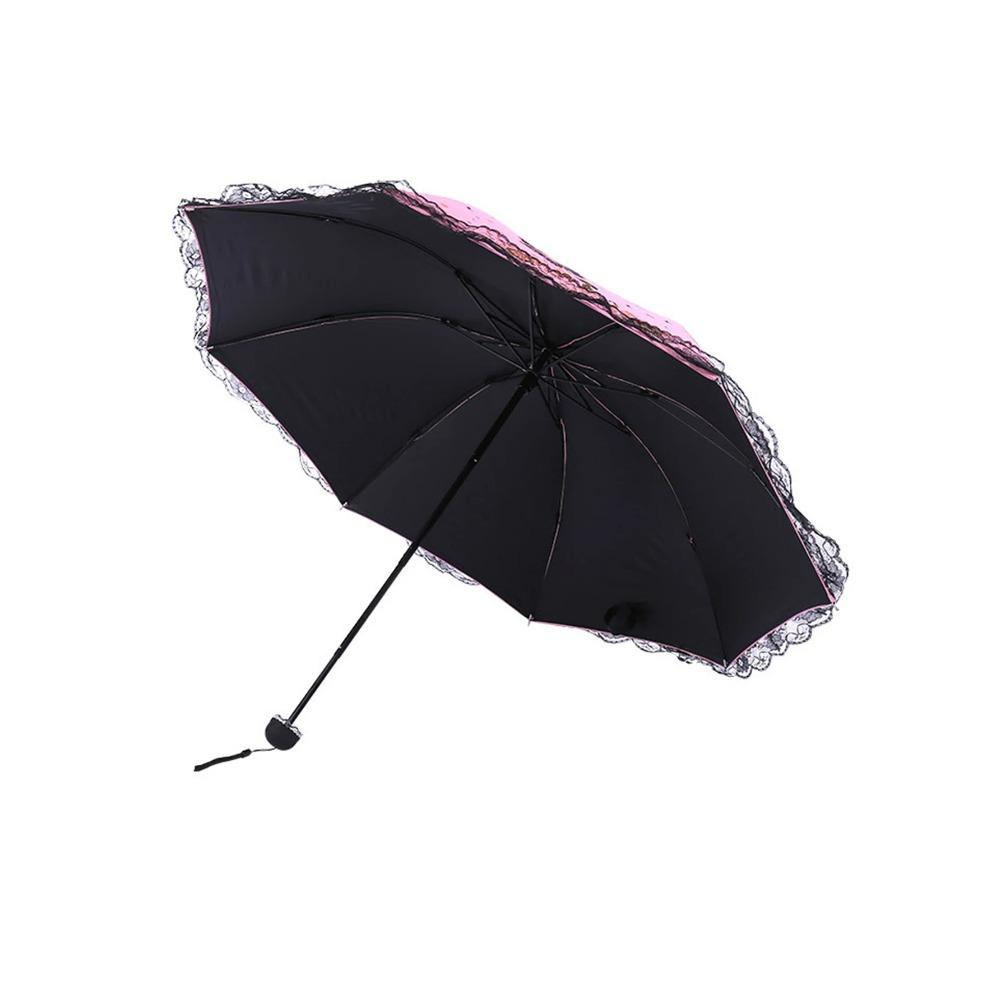 Черный резиновый зонт, порхающая бабочка, защита от солнца, женский складной зонт от солнца, кружевной кружевной зонт