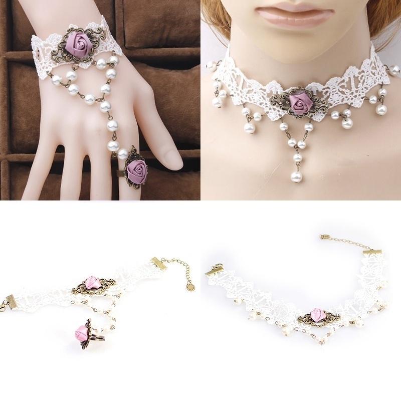 Шикарный готический белый цветок кружевное колье нагрудник ожерелье бусы цепочка кулон роза украшают