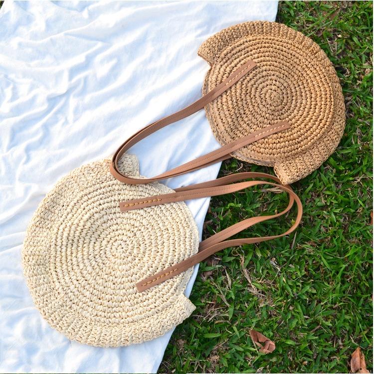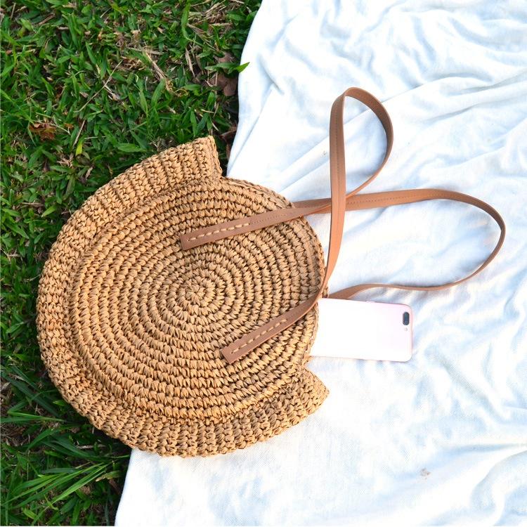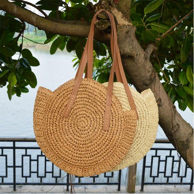 Летняя новая модная круглая пляжная соломенная плетеная пляжная сумка дорожная сумка-тоут
